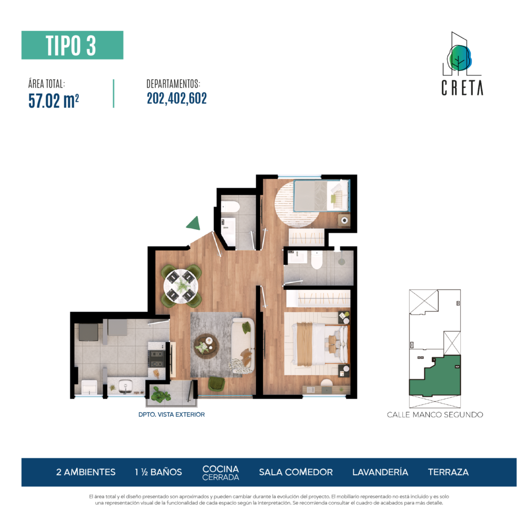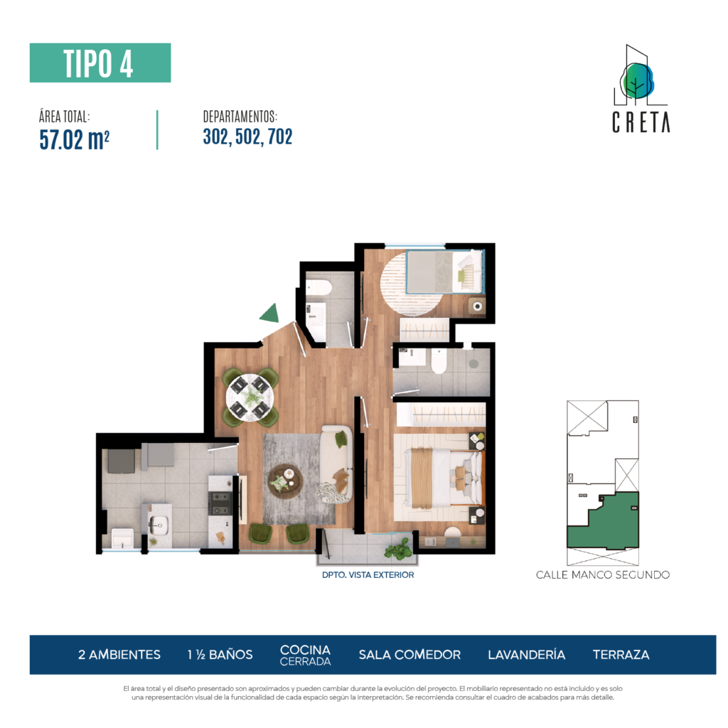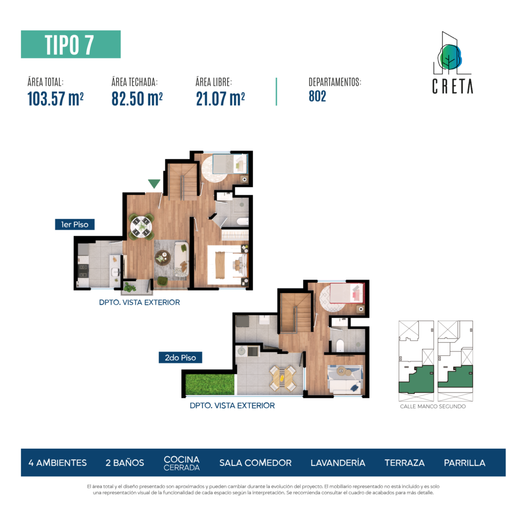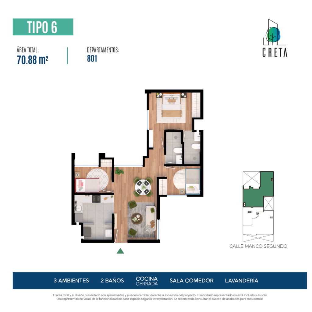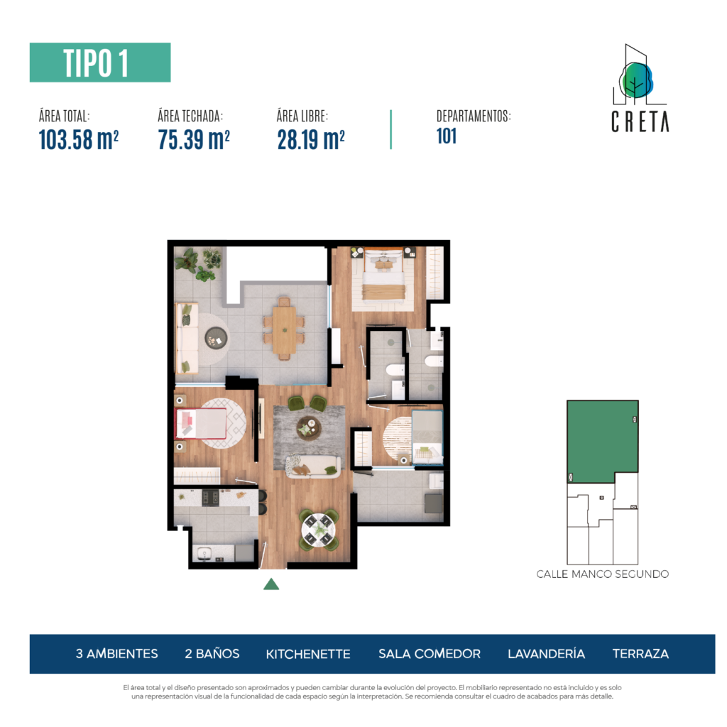 Promoción válida para separaciones realizadas del 21/10/2025 al 15/01/2025 y/o hasta agotar stock. No aplica para todas las tipologías de departamentos del proyecto CRETA en San Miguel, con un stock máximo de 2 unidades.